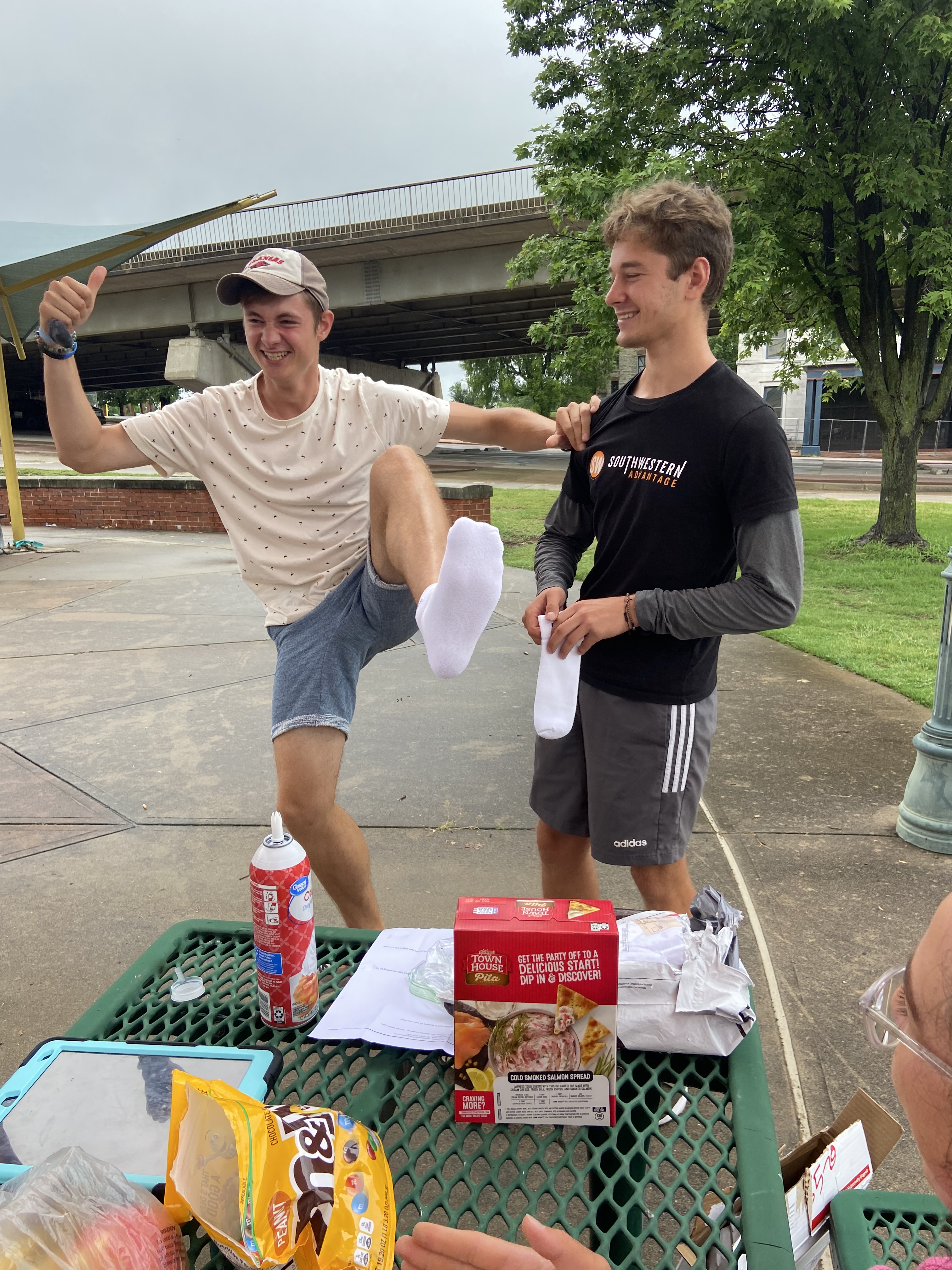Mes, kaip ir Jūs, negalime patikėti kaip greitai eina laikas! Pabaigėme jau tris savaites arba, kitaip tariant, ketvirtadalį vasaros! Ši savaitė buvo PONIO KOJINIŲ savaitė! Jas laimėti galėjo tie, kurių šios savaitės “sit down” skaičius buvo didesnis lyginant su praėjusiomis savaitėmis. Taip pat, Relentless šią savaitę buvo susigalvoję savo varžytuves. Tie, kurie vidutiniškai per dieną nesurinko 5 FaceBook bendruomenės įrašo pasidalijimų, sekmadienio susitikimo metu vilkėjo šiukšlių maišus, sveikiname nugalėtojus (tiksliau pralaimėtojus), kurie galėjo išbandyti naują stilių: Aristidą, Orintą ir Edgarą! Po techninės dalies, vykome į parką, kuriame aptarėme ateinančios savaitės tikslu, pakalbėjome, pasispardėm kamuoliu ir pasigrožėjome St. Louis gamta. Taigi, atsigavom, paplepėjom bei nusiteikėm naujai savaitei.