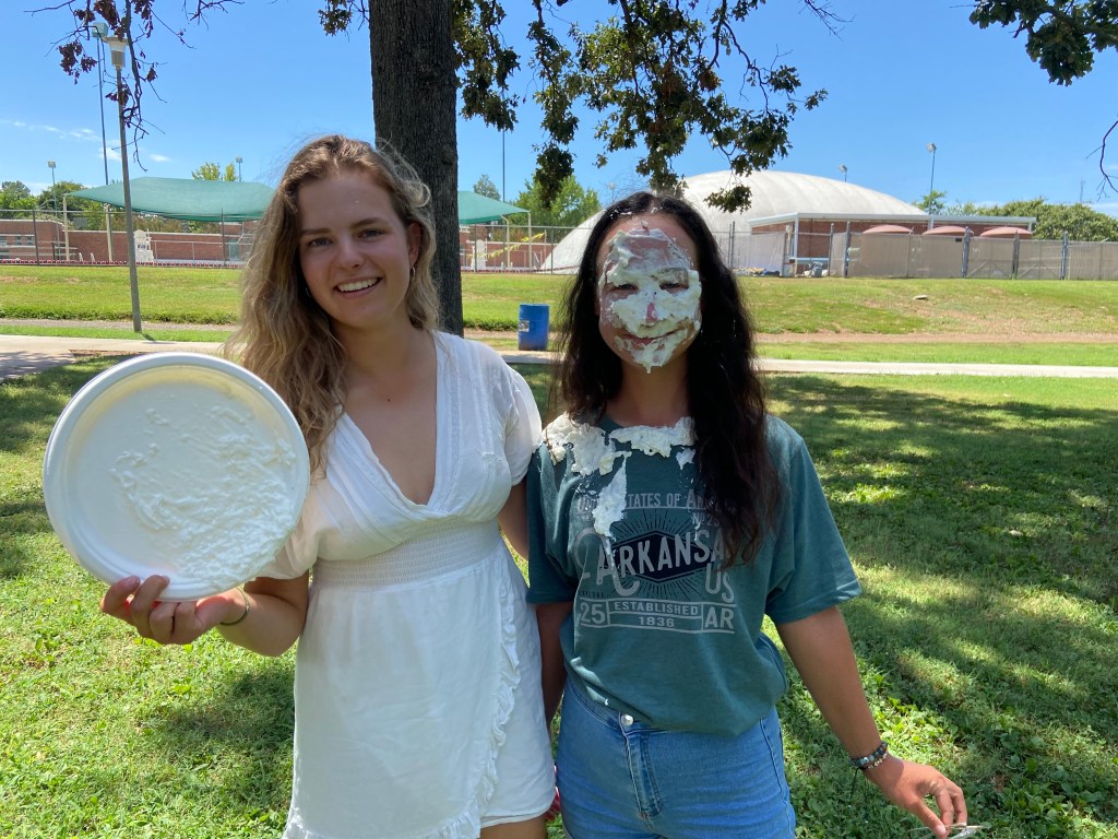 Šią savaitę mes, susiskirstę poromis, konkuravome vieni prieš kitus, kas per savaitę turės daugiau prisėdimų su šeimomis. Tie, kurie pralaimėjo, gavo draugišką grietinėlės kupiną delniuką į veidą nuo laimėjusios poros. Nesijaudinkit, pykčių nebuvo, bet motyvacija prisėsti daugiau su šeimomis tikrai išaugo! 😆